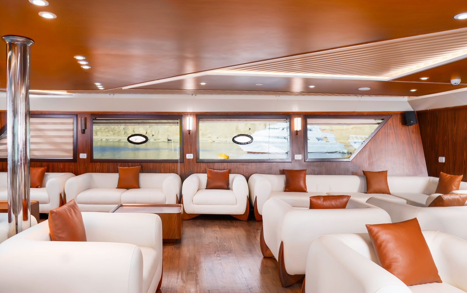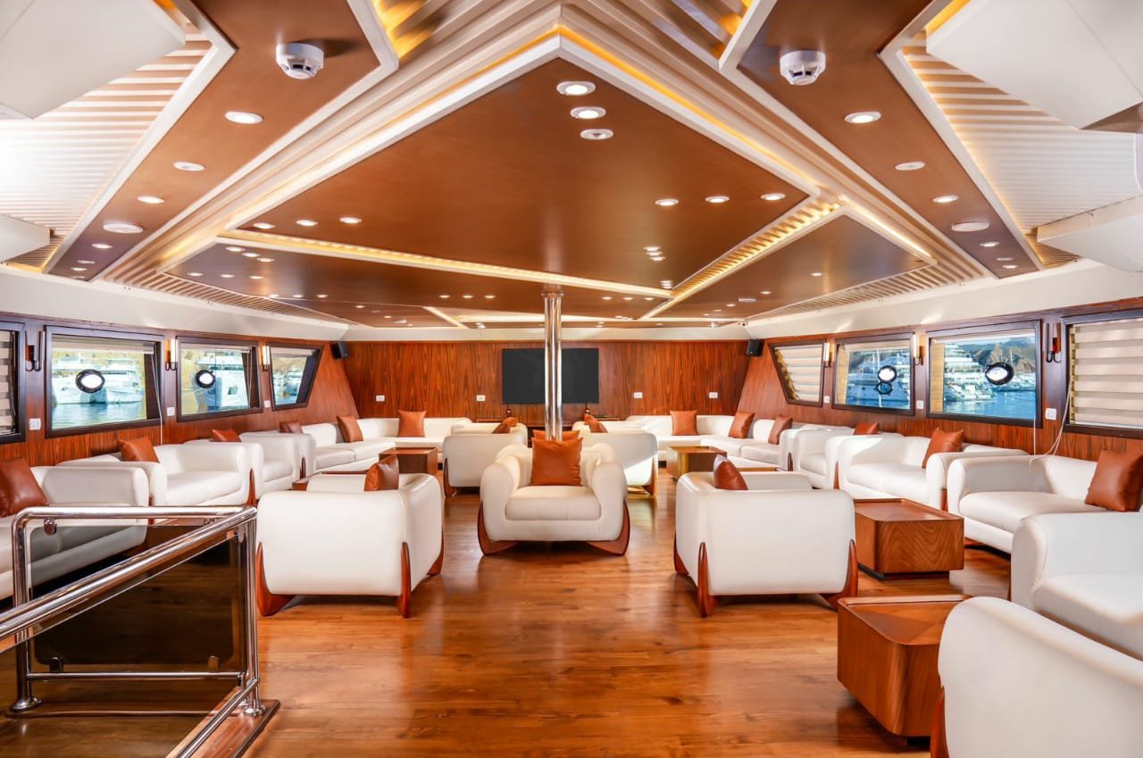 Ваш вечер начнётся с комфортабельного трансфера из отеля в главный порт Старого города. Уже через 30 минут вы окажетесь на борту величественной яхты, сияющей огнями и готовой к плаванию вдоль ночного побережья Красного моря.