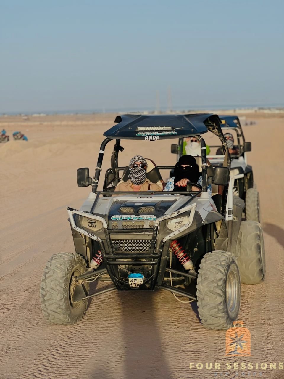 Всё прошло отлично, особенно понравилось, как всё чётко организовано. В пустыне жарко, но квадроциклы и багги — огонь. Хотела сначала отказаться от парасейлинга, страшно было, но подняли — и вау!!! Вид на весь Шарм просто невероятный.