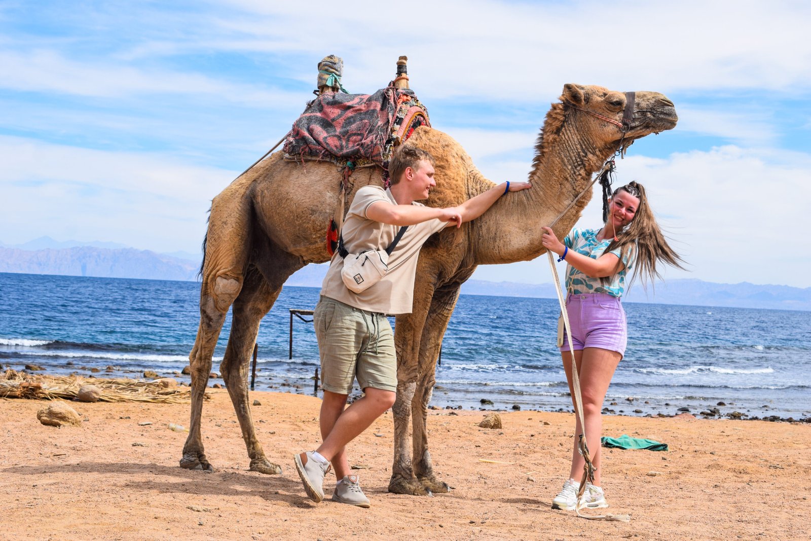 Kolejnym punktem programu jest przejażdżka na wielbłądach wzdłuż wybrzeża Morza Czerwonego. Trasa prowadzi wzdłuż linii brzegowej i pozwala na obserwację połączenia gór Synaju z morzem.