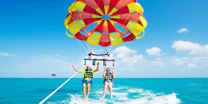 Program obejmuje lot spadochronem nad Morzem Czerwonym, podczas którego można zobaczyć wybrzeże z wysokości. Następnie zaplanowana jest przejażdżka na dmuchanym bananie – popularna atrakcja wodna realizowana na otwartym morzu.