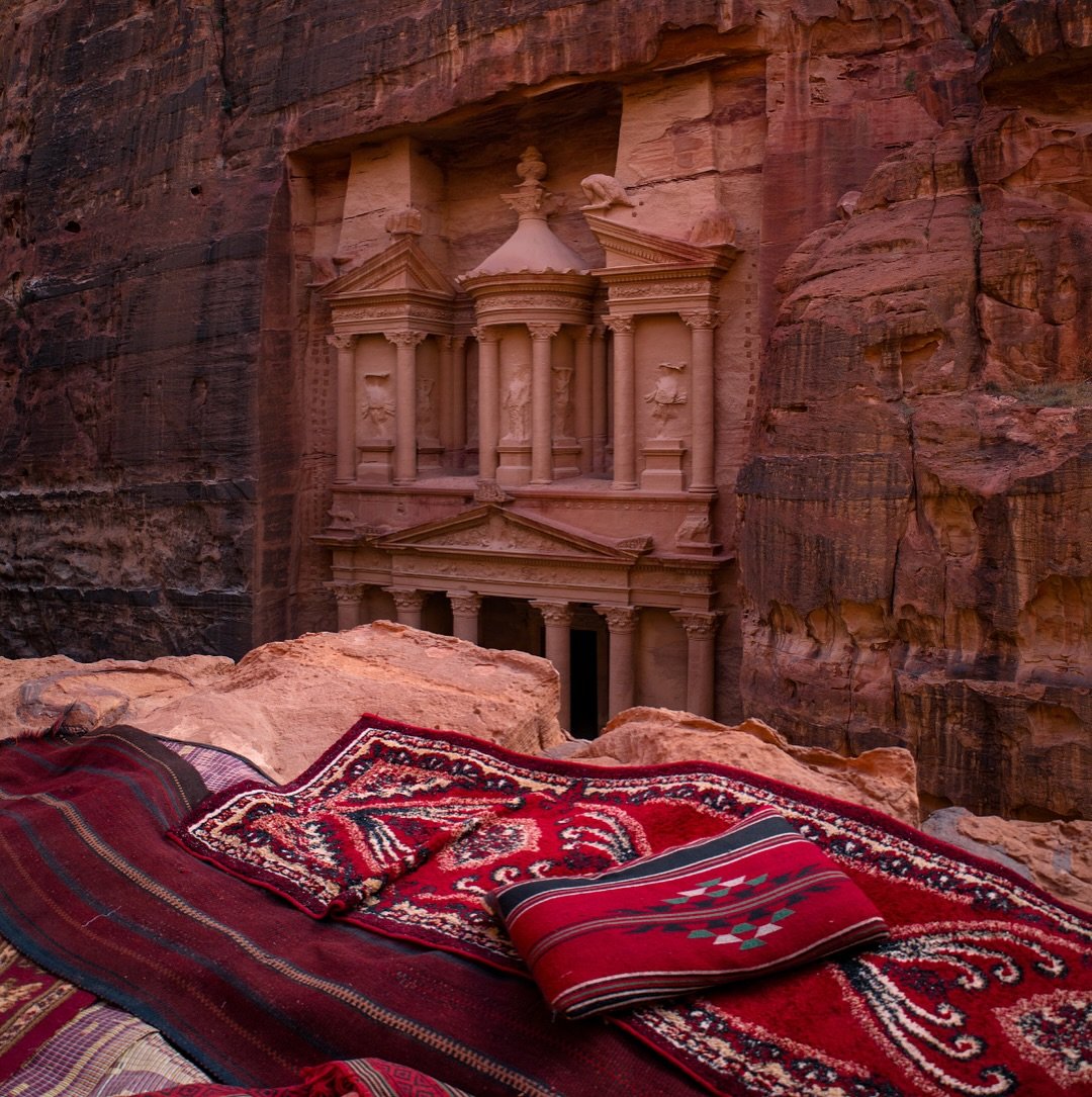 Droga do Petry prowadzi przez wąski wąwóz Siq, który stopniowo wprowadza w atmosferę tajemnicy. Wysokie ściany skalne i kręta ścieżka sprawiają wrażenie podróży w czasie. Kulminacyjnym momentem jest nagłe odsłonięcie Skarbca (Al-Khazneh) — monumentalnej fasady wykutej w skale ponad dwa tysiące lat temu, będącej symbolem Petry i jedną z najbardziej rozpoznawalnych budowli świata.