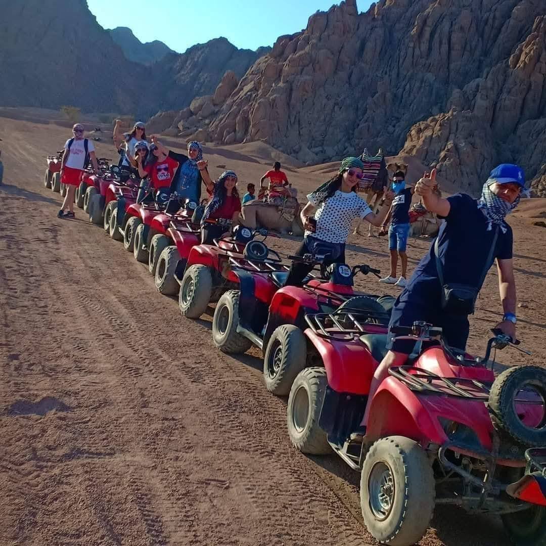 Program obejmuje również przejażdżkę quadami po pustyni oraz tradycyjną przejażdżkę na wielbłądach. Kolejnym etapem jest rezerwat „Trzy Baseny” (Three Pools), znany z naturalnych lagun i raf koralowych. Po czasie wolnym na kąpiel i snorkeling przewidziany jest obiad w restauracji nad morzem. Wycieczkę kończy spacer po Dahabie i wizyta na lokalnym targowisku.