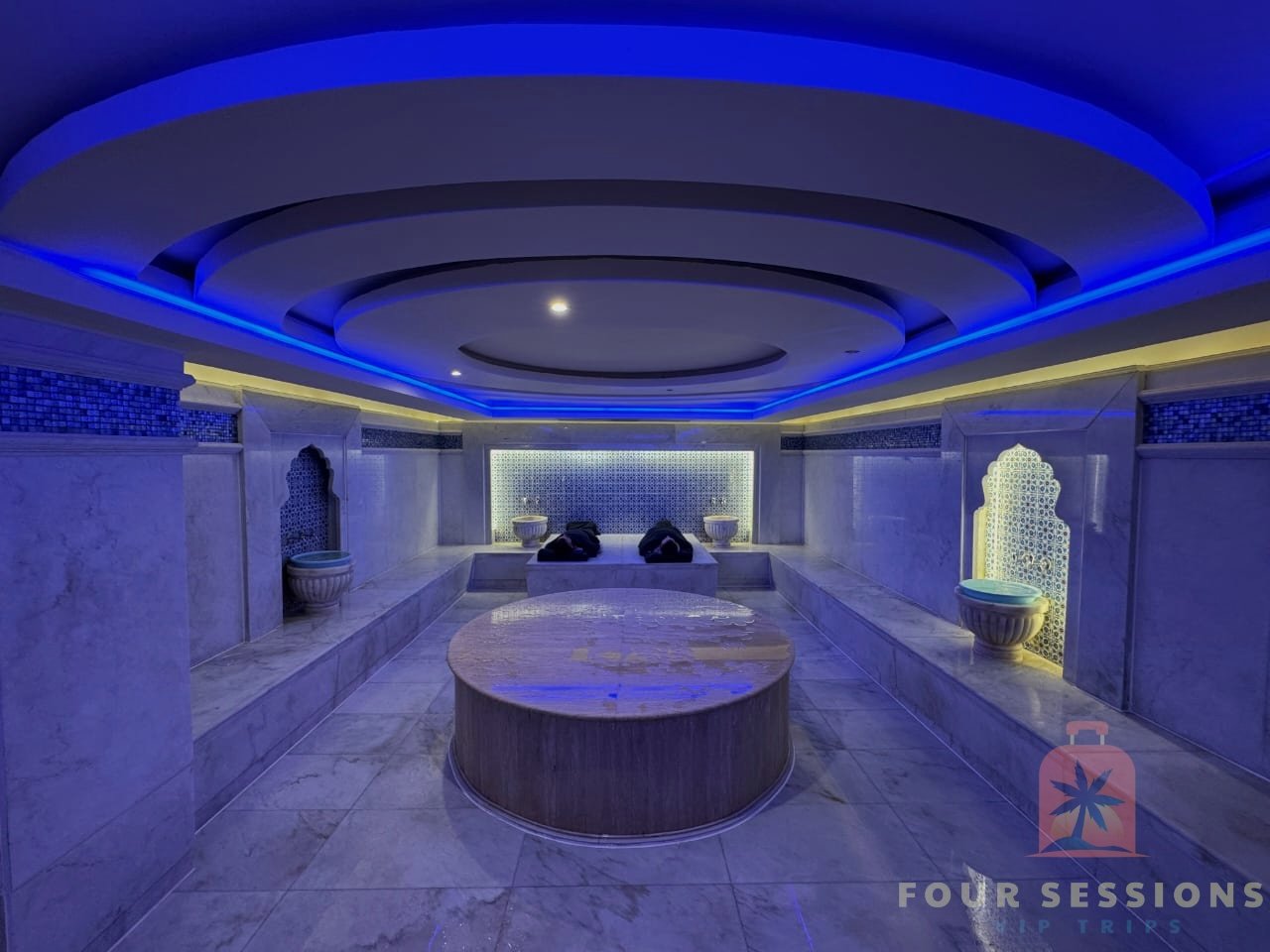В Шарм-эль-Шейхе вы можете пройти полноценный ритуал хаммама в атмосферном комплексе с мраморными стенами и купольными потолками, которые погружают в атмосферу восточной роскоши.